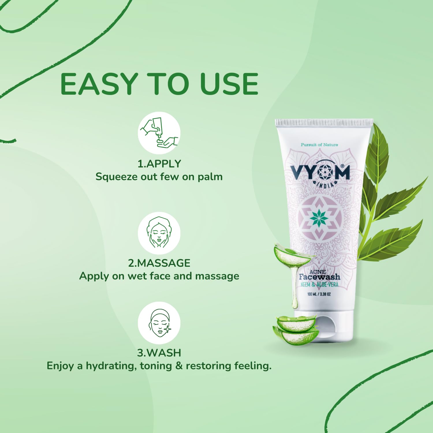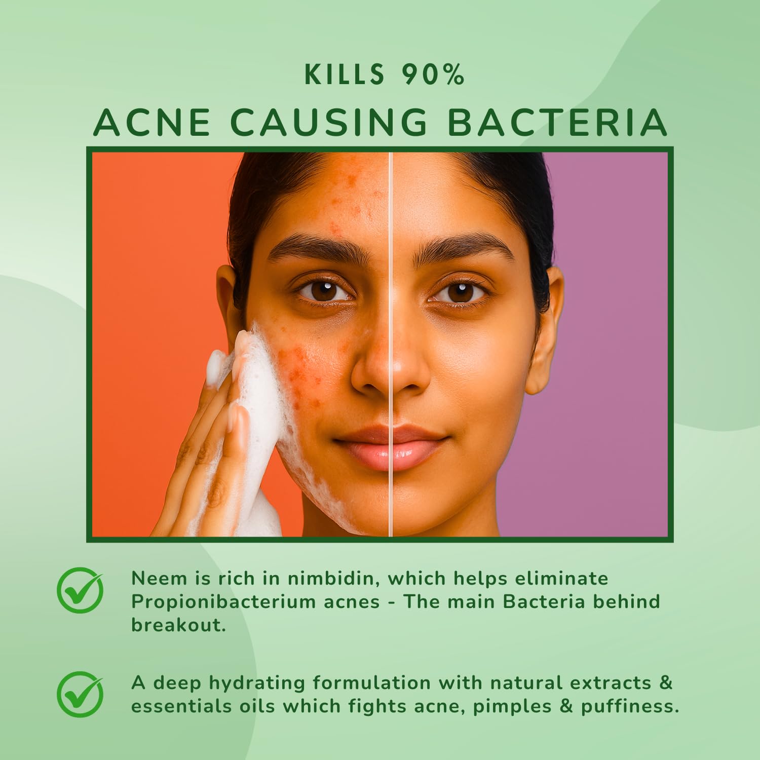 - Powerful Neem & Aloe Vera Formula — Neem offers antibacterial and anti-inflammatory benefits to control oil and reduce acne, while Aloe Vera provides deep hydration and antioxidant protection for a calm, healthy complexion