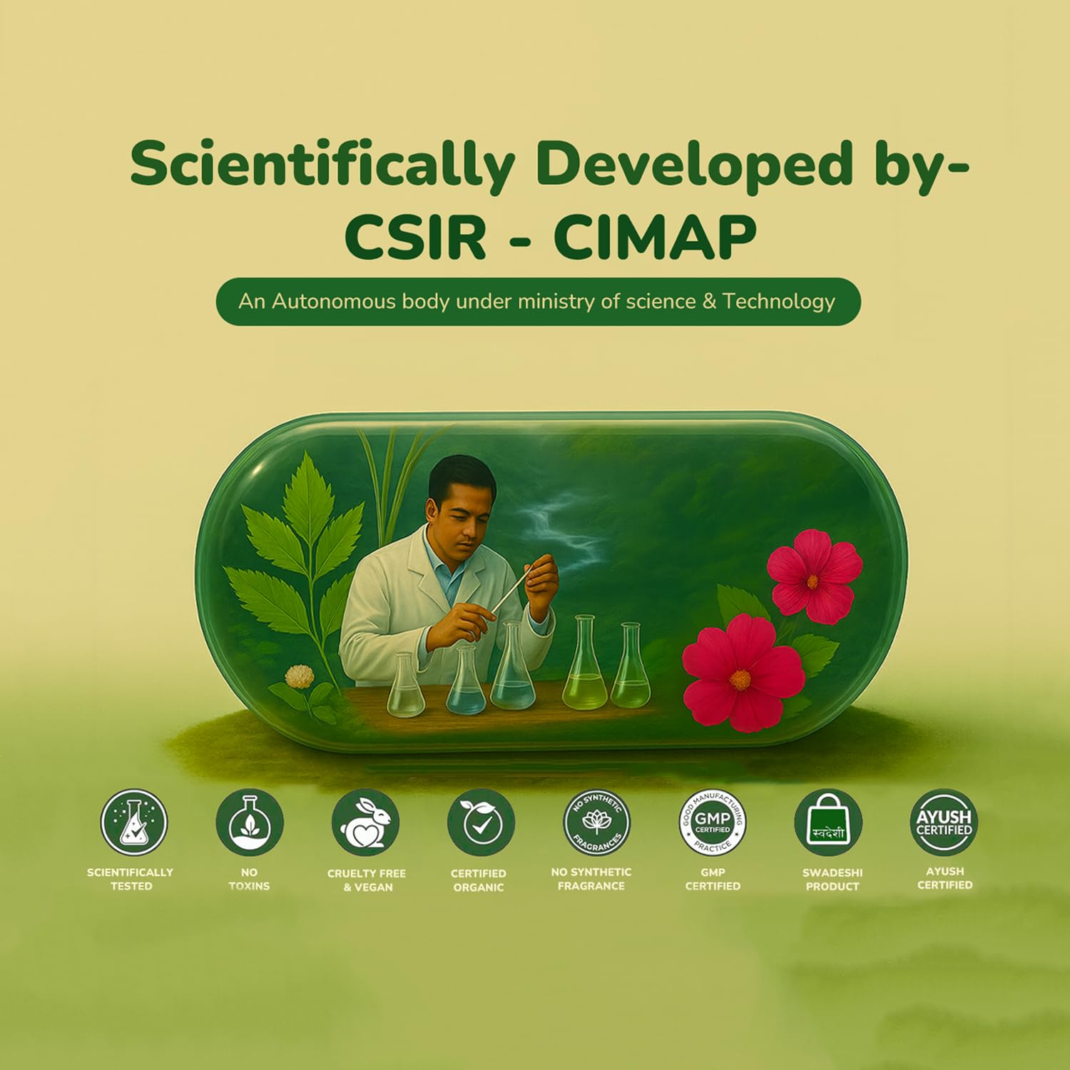 - Scientifically Backed & Dermatologically Trusted — Developed using CSIR-CIMAP expertise, dermatologically tested and certified for performance and quality
