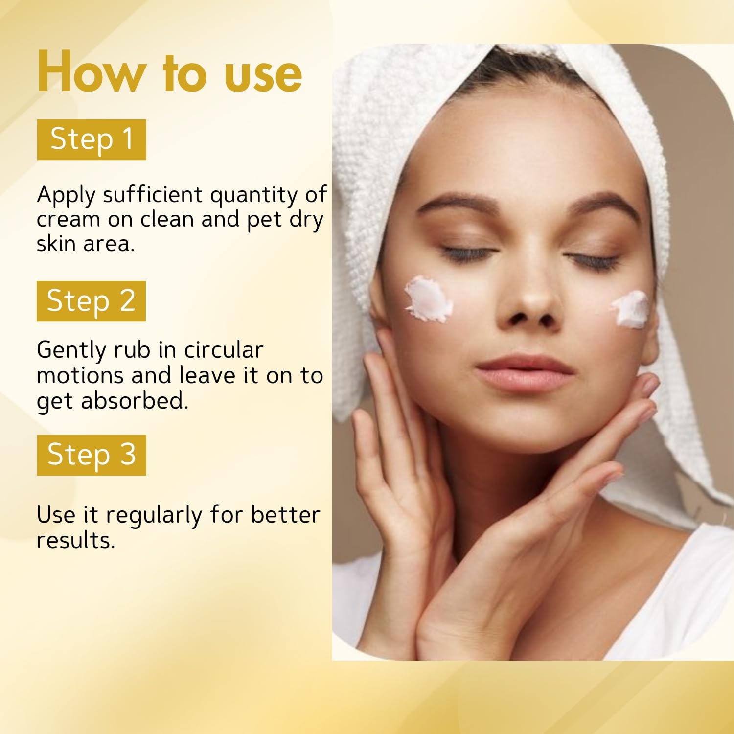 - HOW TO USE: Apply sufficient quantity of cream on clean and pet dry skin area. Gently rub in circular motions and leave it on to get absorbed.